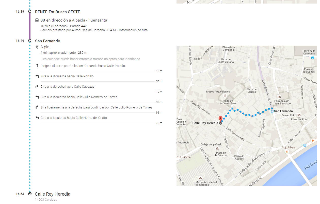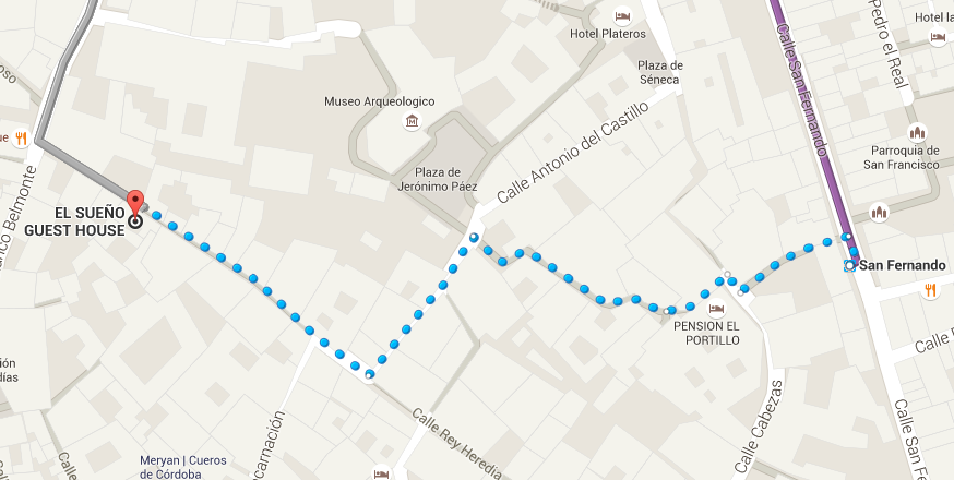 So..once you are outside take a city bus number 3 until "San Fernando" stop and follow the next maps.